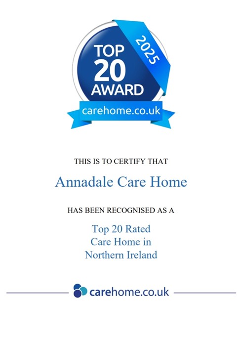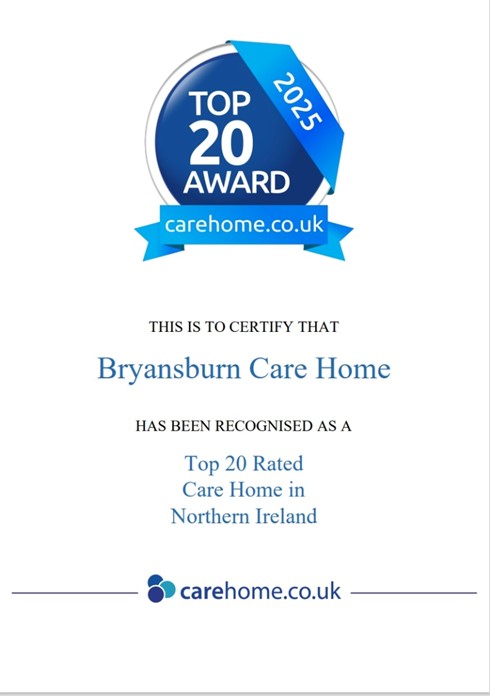 We are delighted that our teams at Annadale, Bryansburn, Marina and Rockfield have officially received their AWARDS CERTIFICATE confirming that they have been recognised as one of the Top 20 Care Homes in Northern Ireland for 2025.